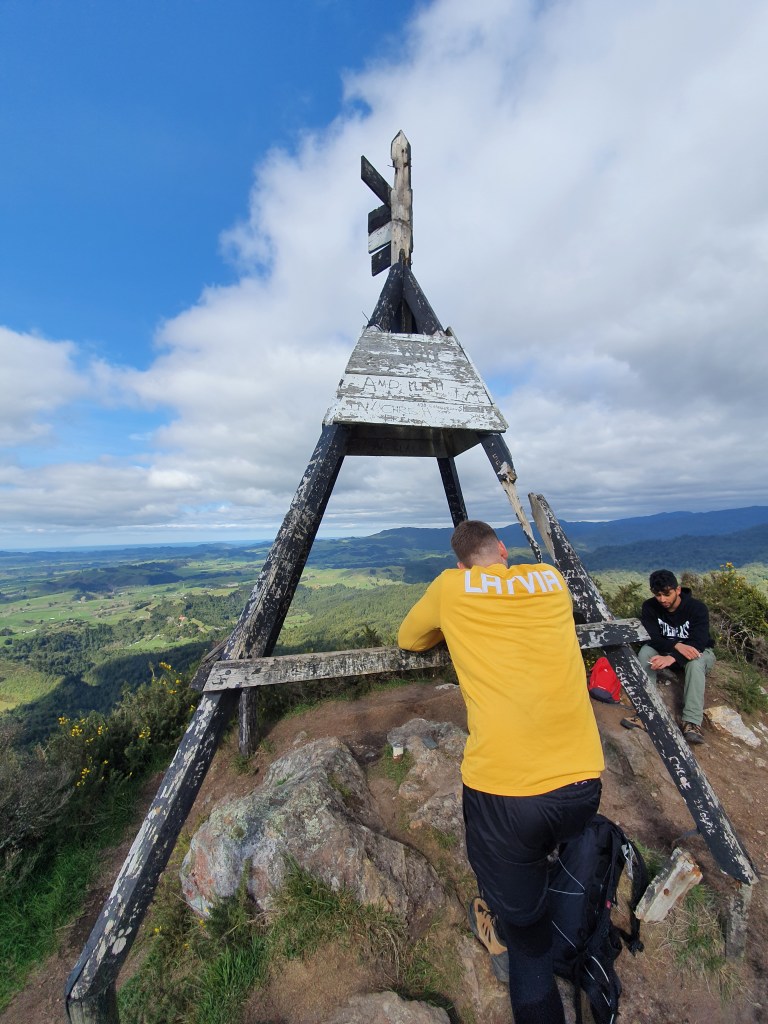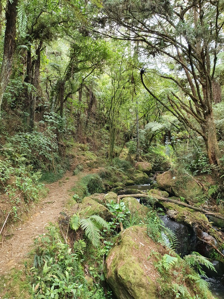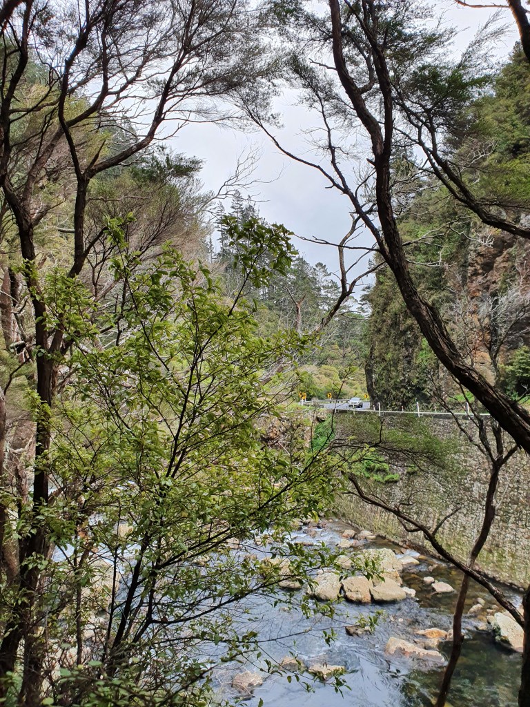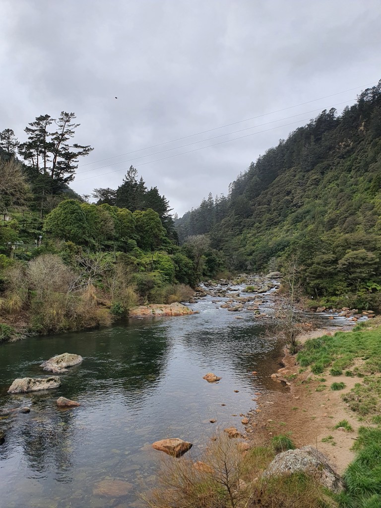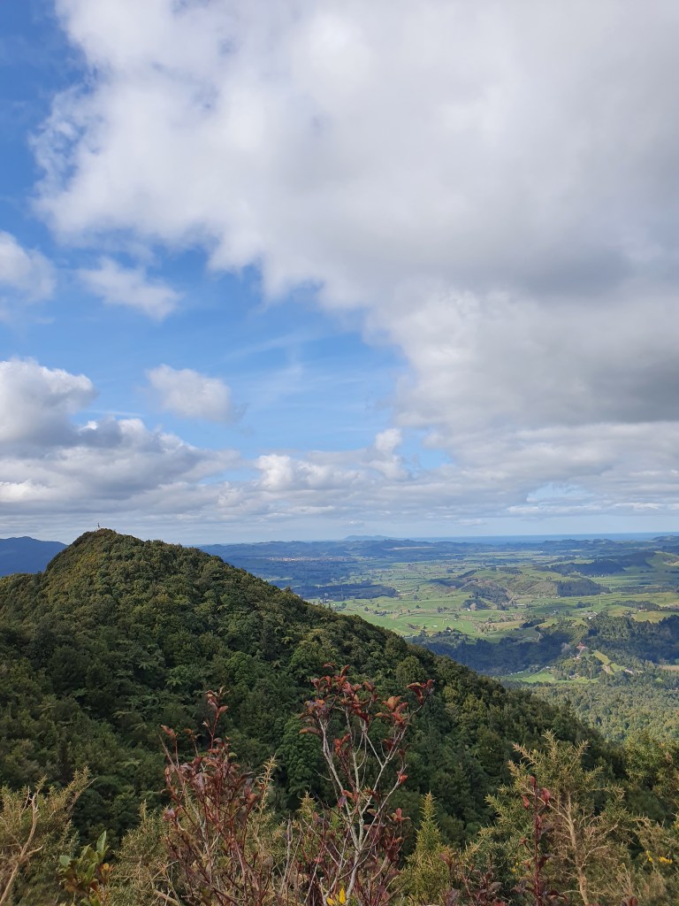 Karangahake virsotne – sākumā uz takas ”Jūrmalas telpaugi”, skaista upīte, ļoti nejauki stāvs kāpiens un skats no augšas. Parunājām ar puisi no Mumbajas, kurš Jaunzēlandē ir jau 6 gadus un ir gan izmācījies, gan tagad strādā kā grāmatvedis. Viņš nedēļas nogales pavada vienatnē staigājot, un ļoti ilgojos pēc ģimenes. Plāno vecākus kaut kā dabūt uz šejieni.