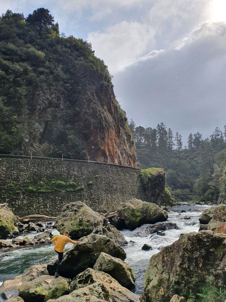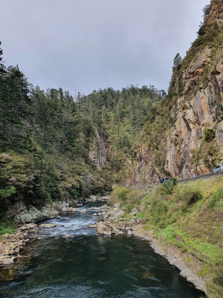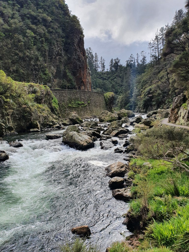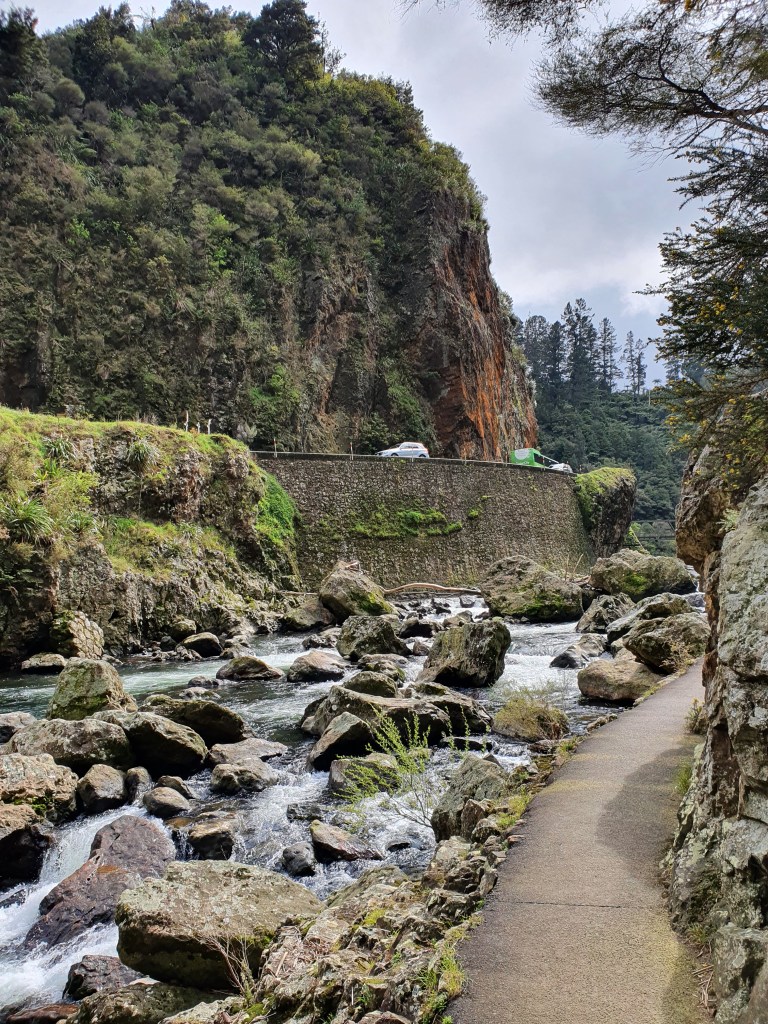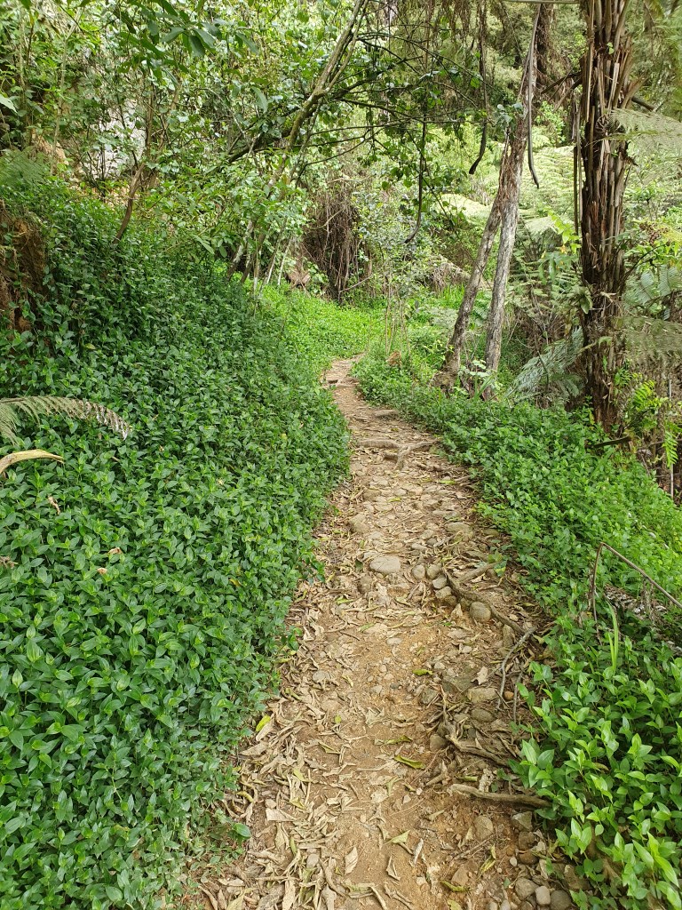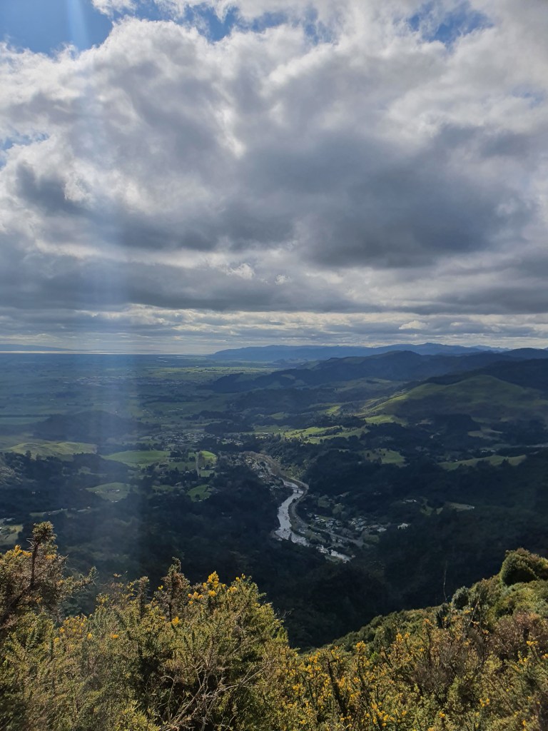 Karangahake virsotne – sākumā uz takas ”Jūrmalas telpaugi”, skaista upīte, ļoti nejauki stāvs kāpiens un skats no augšas. Parunājām ar puisi no Mumbajas, kurš Jaunzēlandē ir jau 6 gadus un ir gan izmācījies, gan tagad strādā kā grāmatvedis. Viņš nedēļas nogales pavada vienatnē staigājot, un ļoti ilgojos pēc ģimenes. Plāno vecākus kaut kā dabūt uz šejieni.