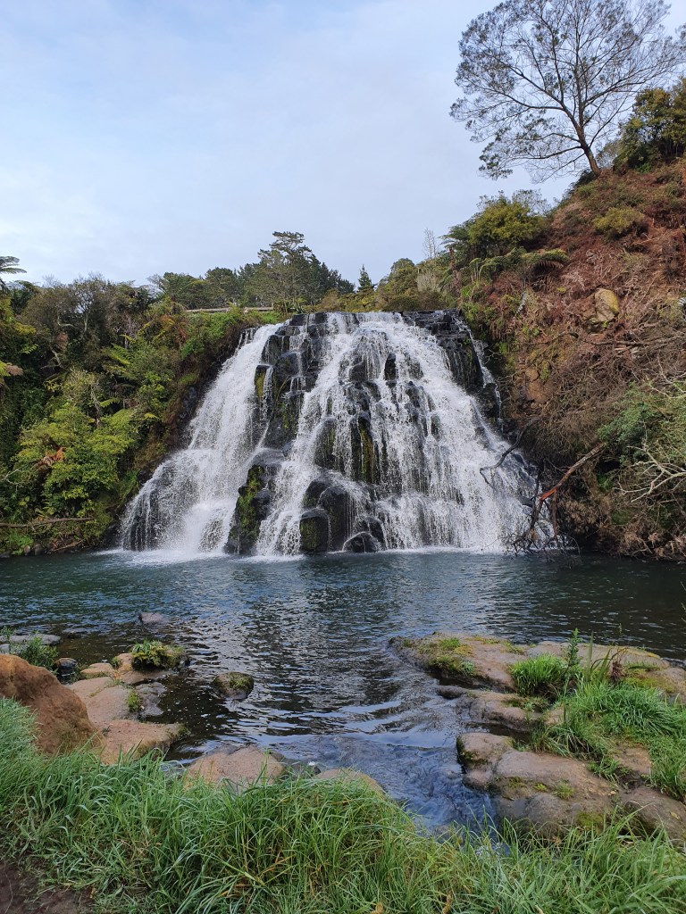 Pa ceļam uz Victoria battery apskatījām iespaidīgo Owharoa falls.