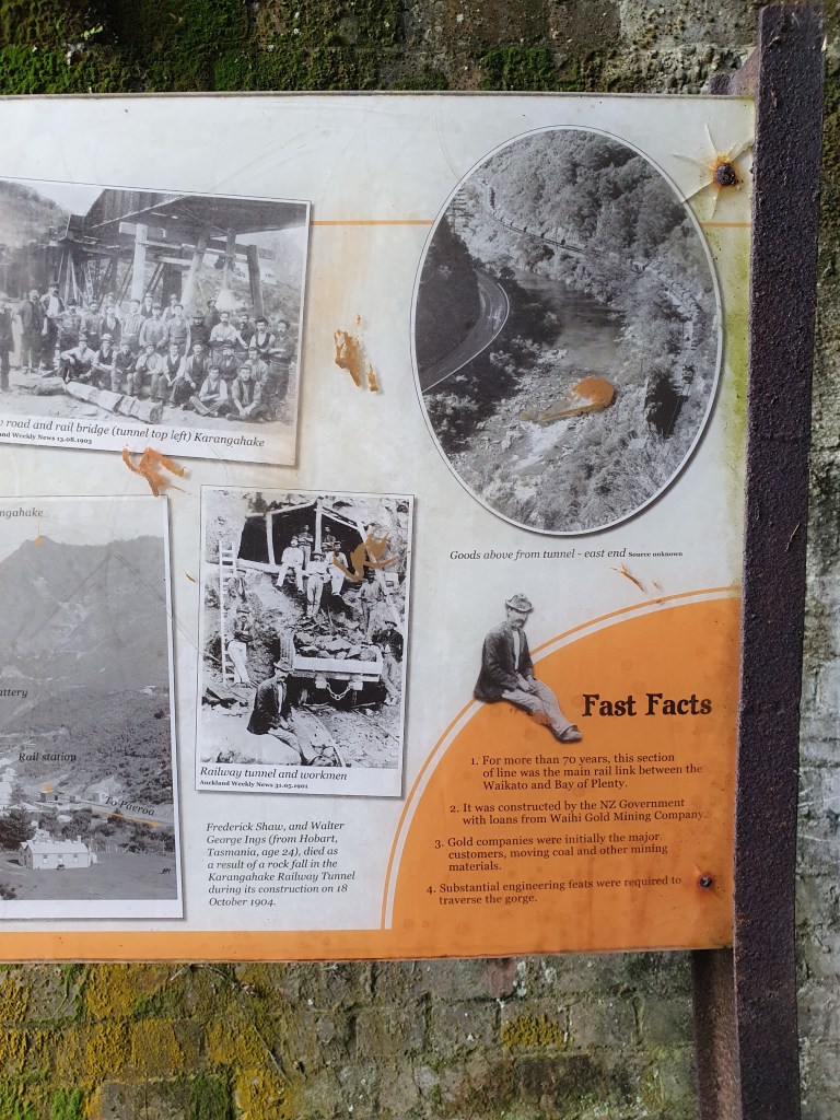 Šajā foto albūmā bildes no Karagahake virsotnes un izbrauciena otrās dienas – apskatījām kārtējo ūdenskritumu, izpētījām svarīgu tūrisma objektu – cianīda-filtru tvertnes, izgājām cauri 1 km garam tunelim, kas agrāk bija daļa no valsts galvenās dzelzceļa līnijas (valdība aizņēmās naudu no zelta raktuvju īpašniekiem, lai to uzbūvētu), gar upi atgriezāmies Crown mills. Un vēl pirms došanās uz Auckland, piestājām blakus esošajā Waihi pilsētā un Waihi pludmalē.