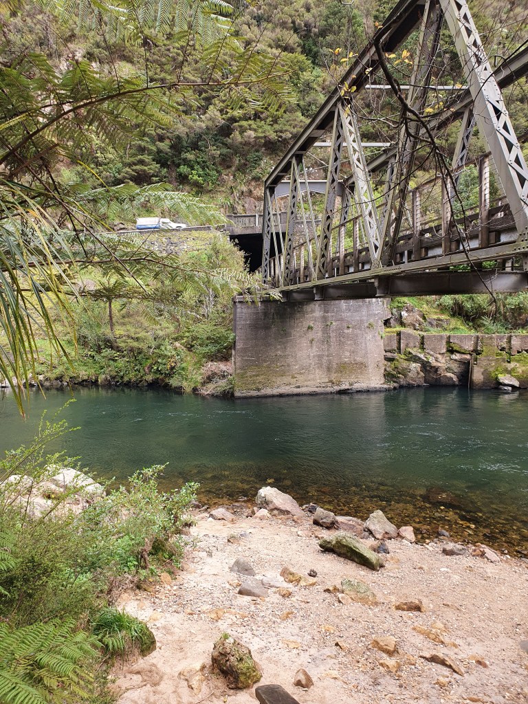 Kārtējais tunelis un kārtējais tilts. Abi lieli, skaisti, iespaidīgi. Šodien tā ir daļa no velo-tūrisma maršruta gar upi un kādreizējo zelta drudža karstāko punktu. Dīvainas sajūtas ejot pa tik taisnu un visā garumā vienādu tuneli. Skats nemainās. Toties, kad izlien no tuneļa, tad ir atkal jauni iespaidi. Milzonīgi akmeņi upē un mazītiņas mašīnītes uz klints fona. Ir arī trīs balti ceļmalas krusti, un citā līkumā arī mašīna pavisam upes krastā. Ļoti skaista vieta un pastaiga. Iepriekš atvainojos, ka man ir slinkums tulkot informatīvās plāksnes ar diezgan lielu informācijas apjomu par to, kas un kā tieši notika zelta ieguvē.