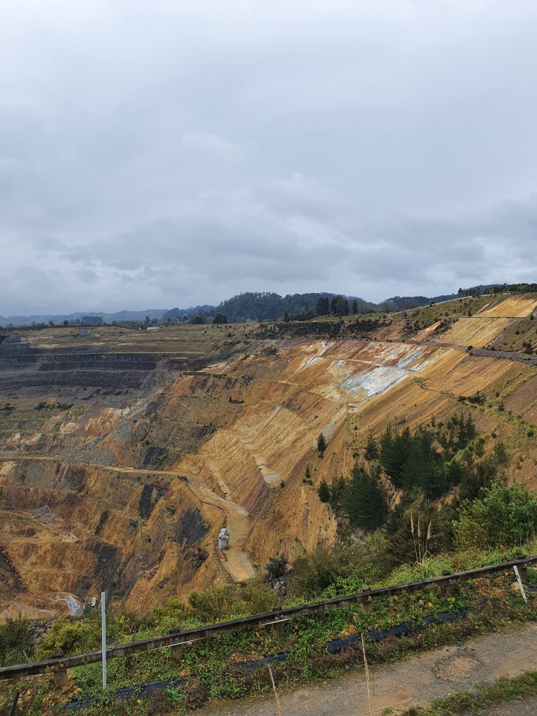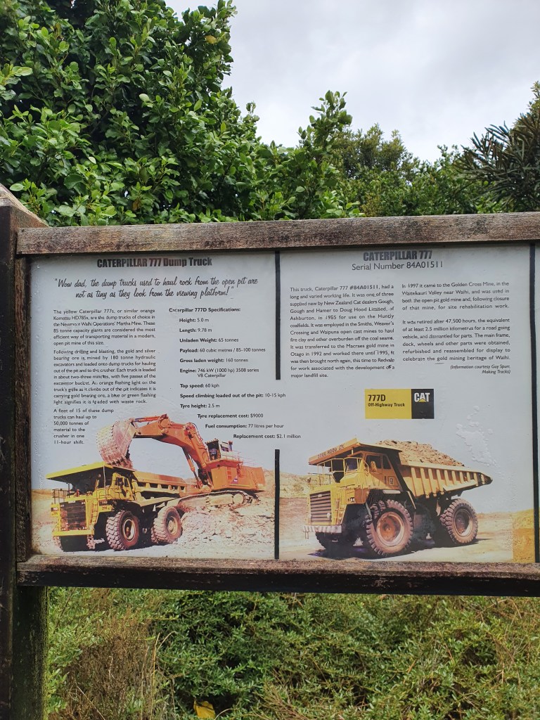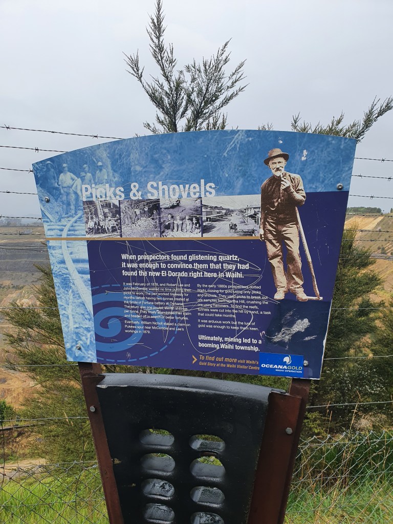 Martas zelta raktuve Waihi pilsētā. Viena no lielākajām pasaulē. No 1880tajiem gadiem līdz 1952. gadam šī bija pazemes raktuve, un no 1987. gada kā atvērta veida ieguves vieta. Šobrīd nenotiek aktīva ieguve, bet ir iesākts process, lai izveidotu vairākas daudz mazāka izmēra raktuves citā vietā. Lielais arhitektūras piemineklis ir sūkņu stacija – darbināta ar tvaiku. Ja pareizi sapratām, tad šī ēka ir pārvietota 300 m no savas oriģinālās atrašanās vietas, kur tā faktiski darbojās.. pumpējot ūdeni no aptuveni 400 m dziļuma ar ātrumu 400 000 litru stundā. Kopš 1913. gada šo darbu veica elektriskā sūkņu stacija, taču vecā ar tvaiku darbināmā tika izmantota līdz pat 1929. gadam kā rezerves sūkņu stacija.