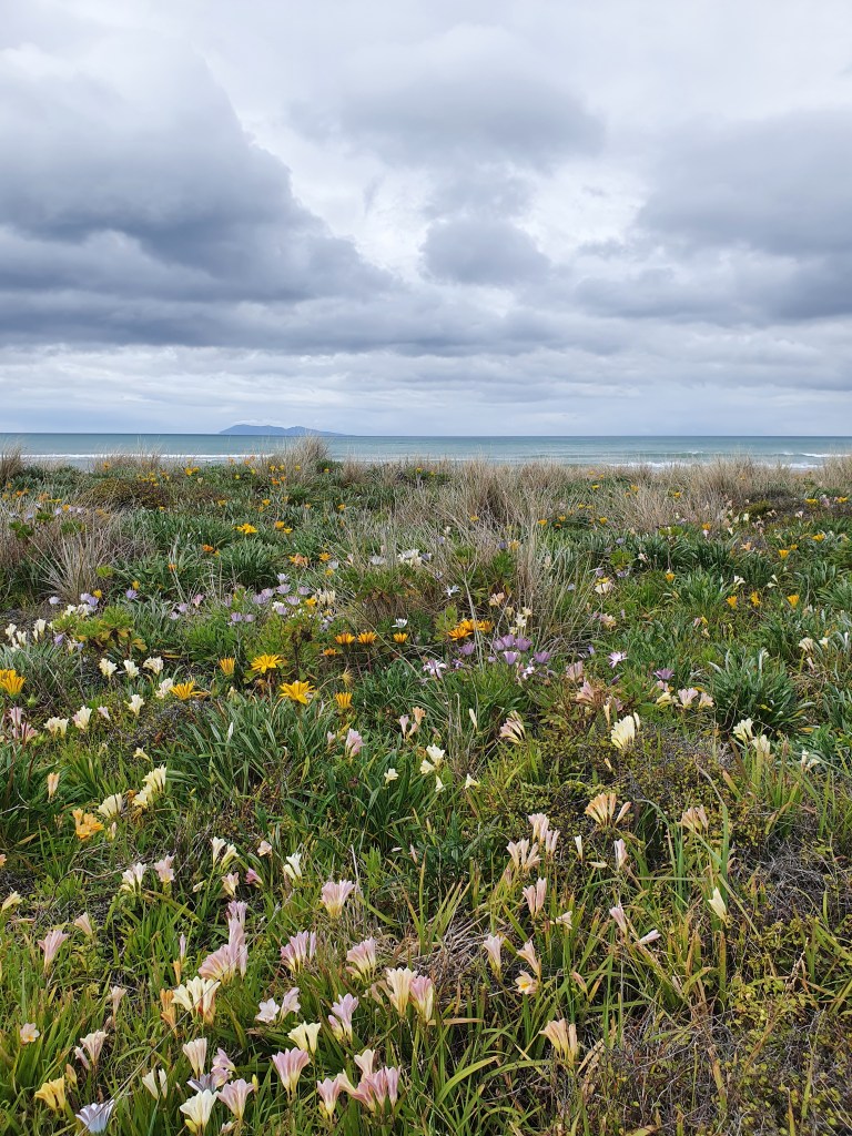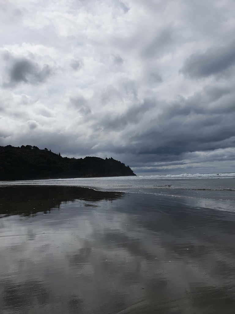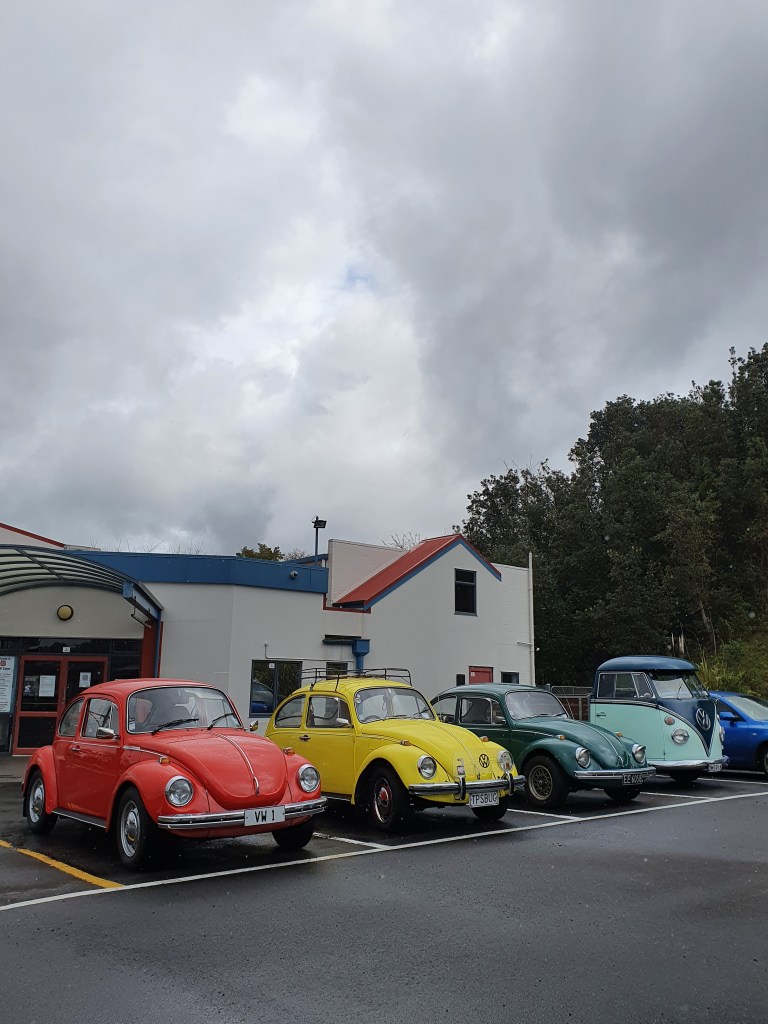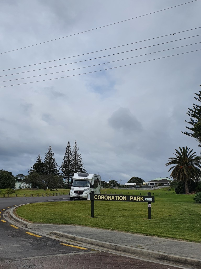 Piestājām arī Waihi pludmalē – iepazināmies ar suni, pasmaržojām brīvdabas kāpu pilsētas un nejauši izsekojām retro mašīnu no pilsētas līdz pat tās dzīves vietai.